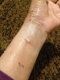 By ten that night the splint had solidified with one of its sharp edges crossing All. Three. Incision. Lines. WTF ?~!