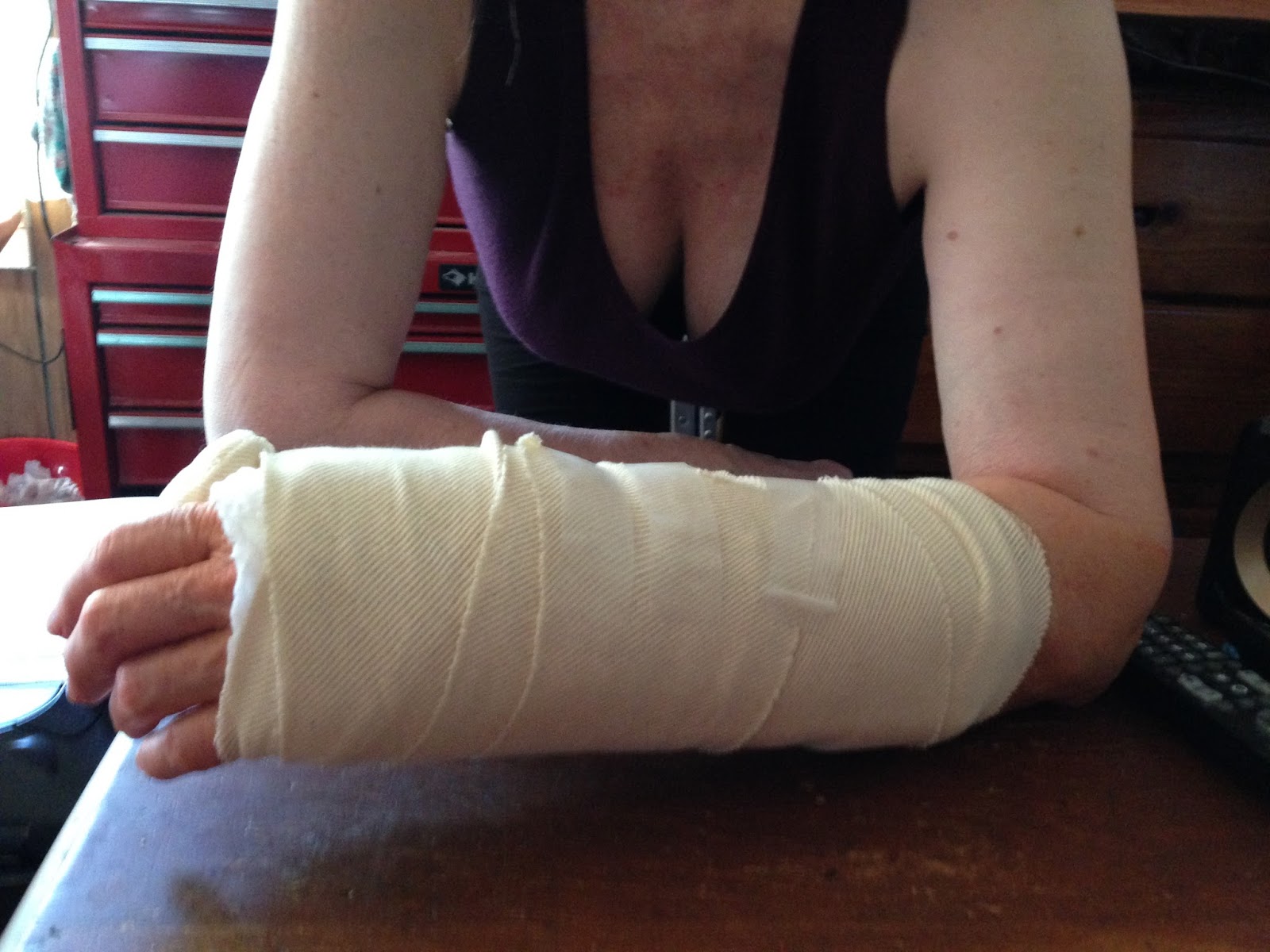 Doc wanted to put me into a non-removable cast for an additional four weeks. No. Not a chance in hell are we doing that. I just went thru 15 days unable to fix my own problem and my knuckle still barks at me.